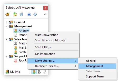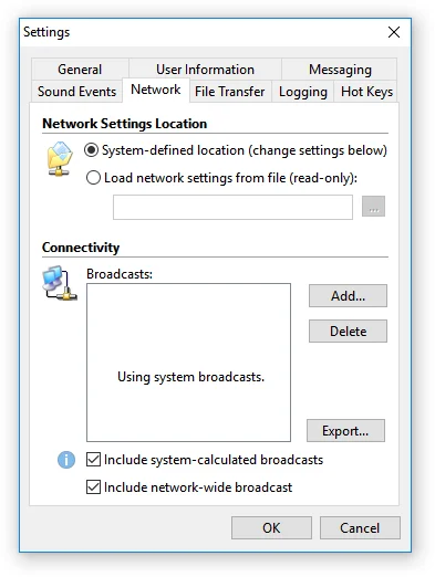 En caso de que su empresa no tenga un controlador de dominio con Active Directory, Softros LAN Messenger le permite automatizar la distribución de su configuración (configuración de red, grupos de usuarios, archivo de licencia, restricciones administrativas) utilizando ciertas funciones integradas.