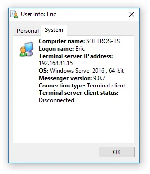 Chat en Red funciona a la perfección en un entorno de controlador de dominio configurado correctamente con Active Directory. Los nombres completos de los usuarios recuperados de Active Directory se muestran en la lista de usuarios, mientras que sus SID se utilizan con fines de identificación dentro del programa.