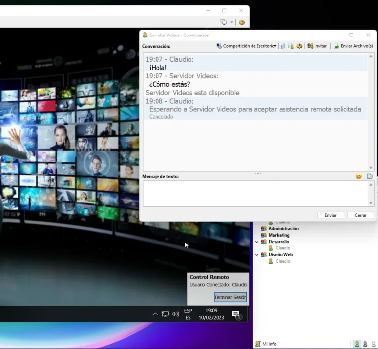 Solicite asistencia remota mediante LAN Messenger y el colega del otro lado se conectará de forma segura a su escritorio para ayudarlo a configurar Windows, instalar una aplicación o resolver un problema técnico. La funcionalidad de escritorio compartido se basa en la tecnología de asistencia remota de Microsoft.